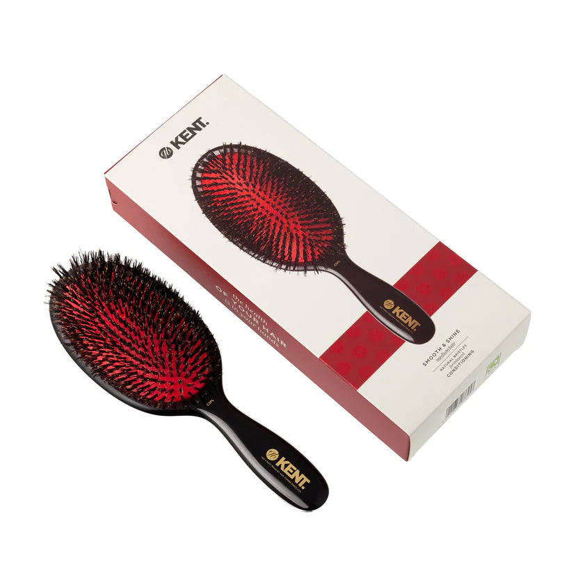 The large oval cushioned hairbrush is filled with superior grade firm natural boar bristle, suitable for medium hair. This highly sophisticated hairbrush will transform your hair. From gently brushing out tight curls, to adding shine and an unparalleled sleekness to up-dos.