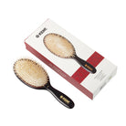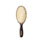 The medium oval cushioned hairbrush is filled with superior grade soft natural boar bristle, making it suitable for medium to fine hair types. This highly sophisticated hairbrush will transform your hair. From gently brushing out tight curls, to adding shine and an unparalleled sleekness to up-dos.