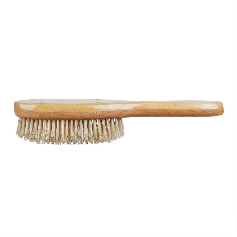 Filled with the finest pure white natural bristle to promote natural shine whilst distributing natural oils. The natural bristle is meticulously wire laid into the brush by hand using an age-old method known as hand drawing. The brush is made from beechwood with a satinwood back. The LHS5 hairbrush was recently featured on the programme 'How its Made',