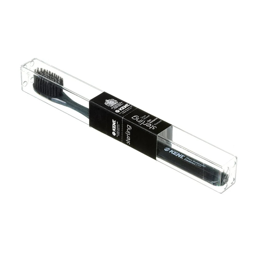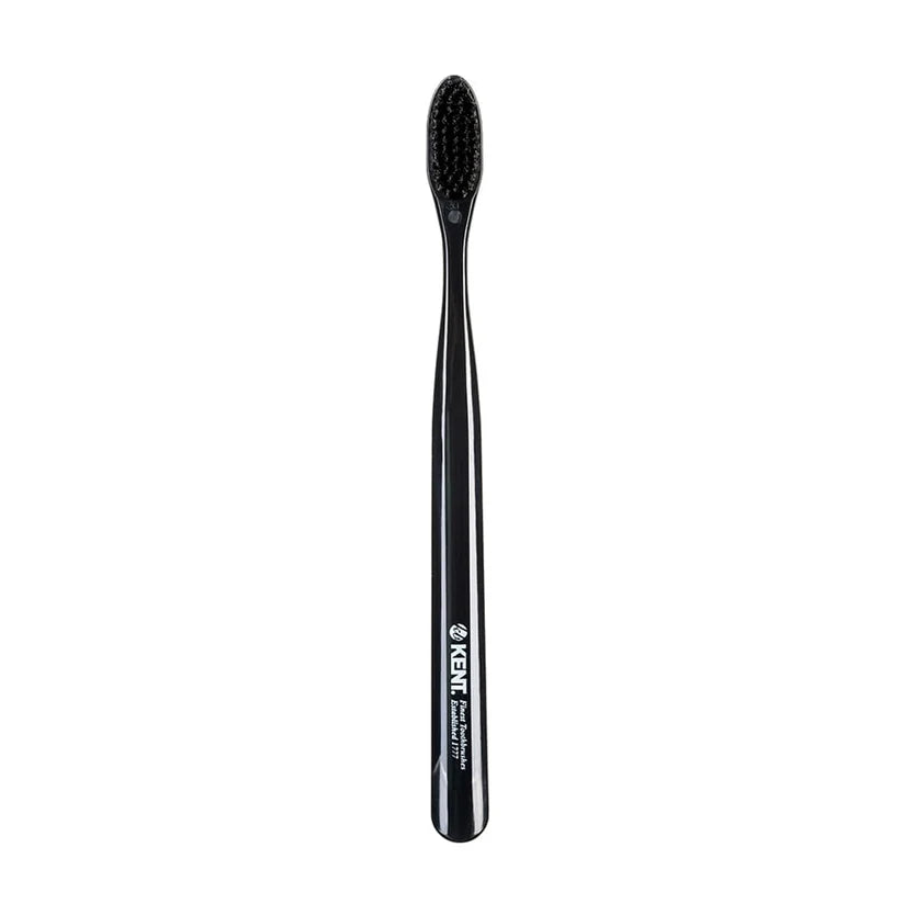 A medium toothbrush head filled with super soft black nylon bristles massages the gums and cleans the teeth with extra comfort.