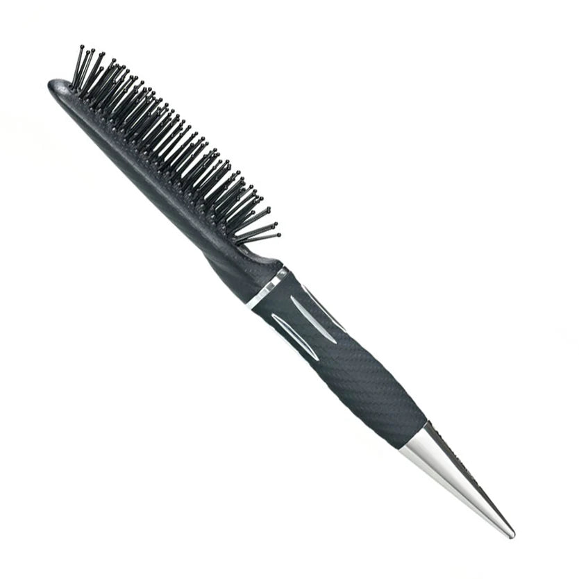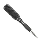 A narrow paddle featuring fine ball-ended quills. Designed for shorter hair length and used as part of a travel kit when space is at a premium.