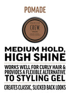 Medium hold with high shine Works well for curly hair and provides a modern, flexible alternative to styling gels. Use it to create classic, slicked back looks or for control in any hair type.